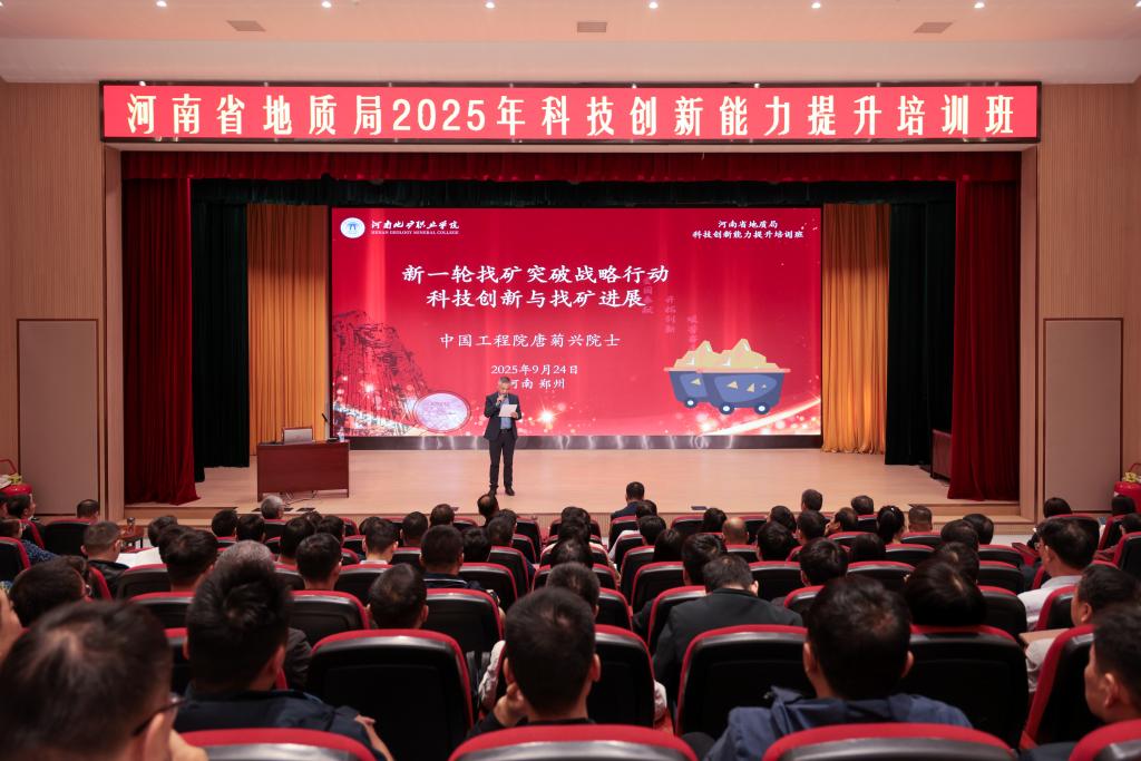 9月24日,中国工程院院士唐菊兴应邀莅临我校,在勤奋楼报告厅作了题为《新一轮找矿突破战略行动科技创新与找矿进展》的专题报告。河南省地质局党组成员、副局长唐志中,总工程师杜欣,科技处处长曹友杰、新能源处一级调研员向世红,学校领导张霖、李明前出席报告会。河南省地质局150余名专家、河南地矿职业学院30余名教职工和110名新生参加报告会。校长刘玉宾主持报告会并致辞。
